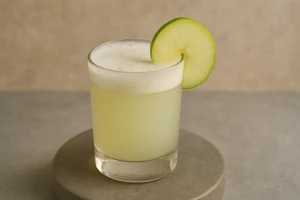 Джин, лимонний фреш, цукровий сироп, яєчний білок.