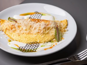 Повітряний омлет із соковитою шинкою та розтопленим сиром — класика, яка ніколи не підводить.